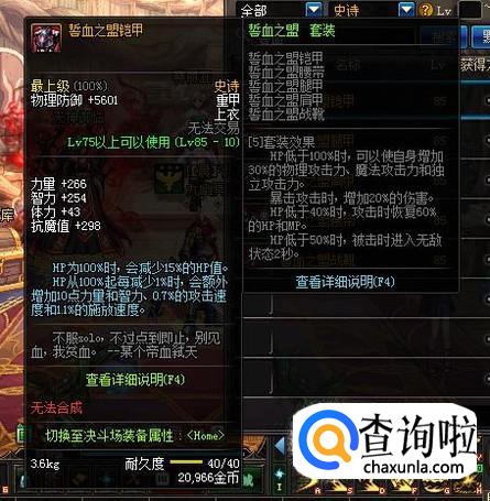 接下来说一下85级史诗防具套装的另外一套——誓血之盟套装,在过去狂战士需要降低自身血量来换取高伤害的版本,是不少玩家的首选套装,即便是在目前的版本,也依然可以作为玩家的选择之一。
