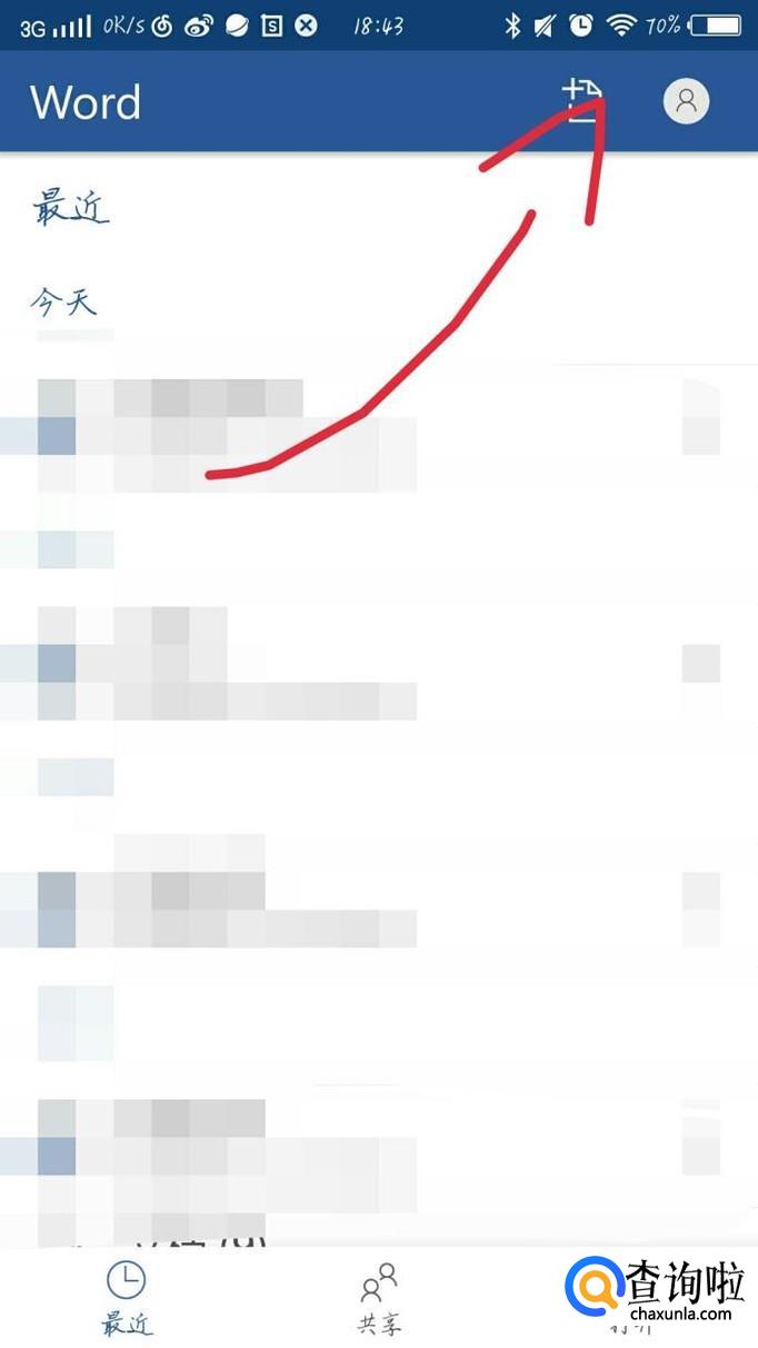 首先打开手机的word软件,如图1所示。进入word后你会看到出现一个新的界面,如图2所示。