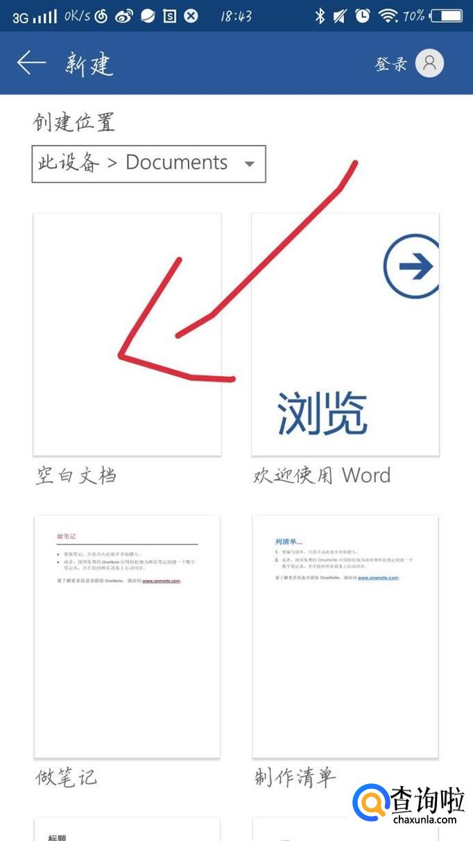 点击“空白文档”选项,如图1箭头所示。你会看到出现一个新的界面,如图2所示。