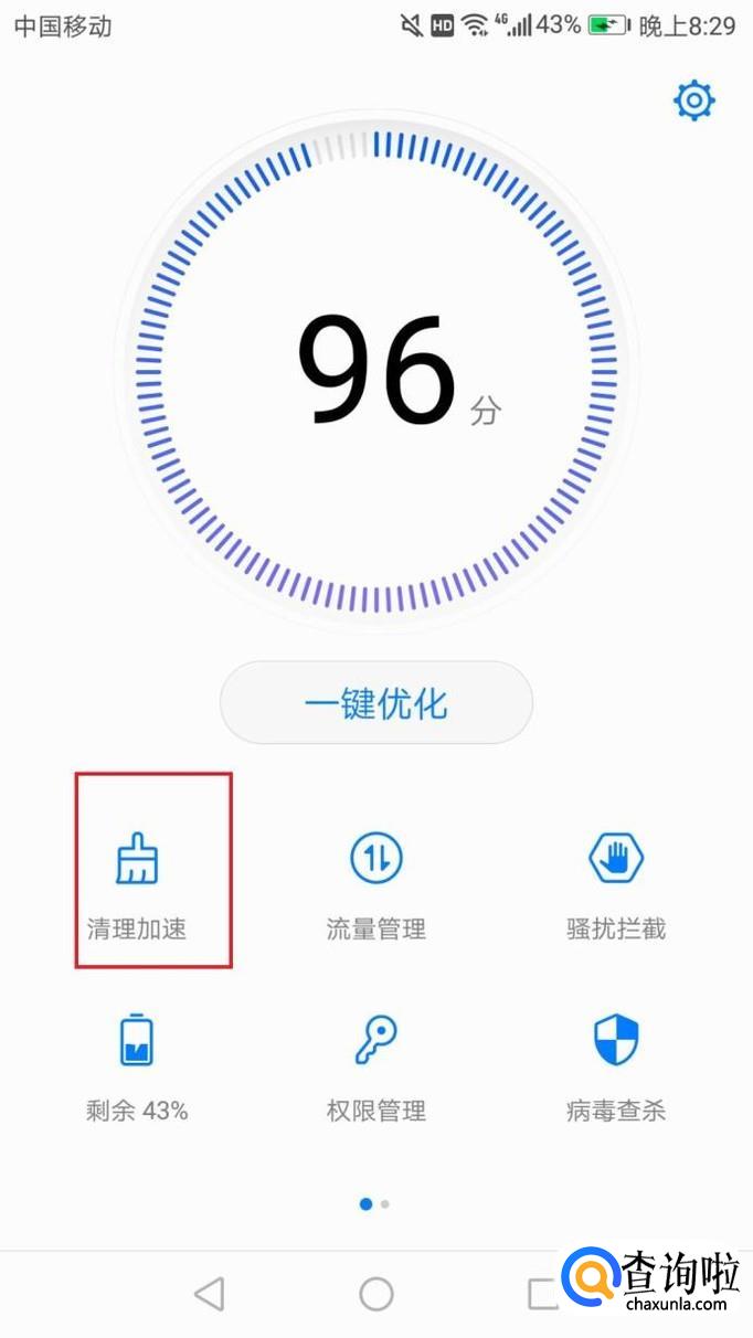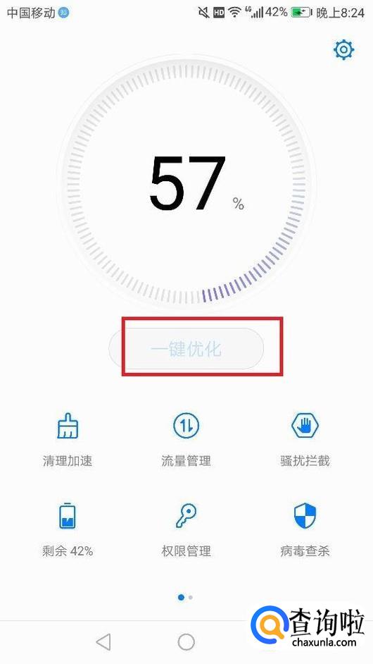 点击荣耀8自带的手机管家软件,选择一键优化。