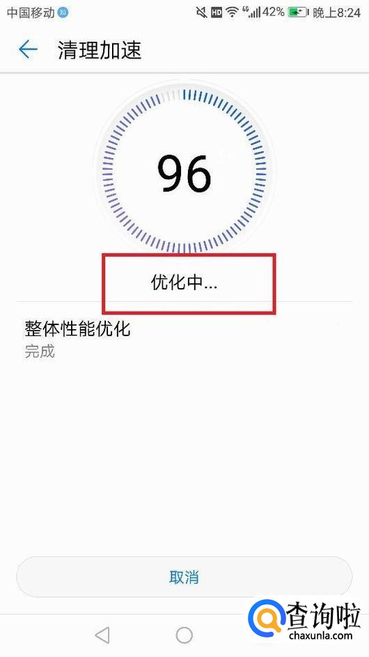 还可以点击清理加速,可以看到在清理加速的过程。