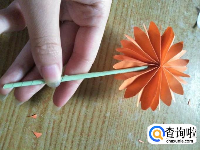 最后,把用双面胶把叶子固定在花杆上,然后用笔在花蕊上打上小点。