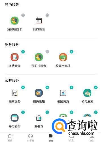 使用APP功能。登录成功后,进入今日校园APP。首页为资讯内容页(校内外精彩资讯)还有同学圈、服务页、消息、我的设置可以进行头像背景图、昵称修改等。如图所示: