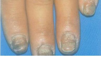 指甲前端或者指甲中间出现分离症状,指甲无法贴合生长,严重一些会产生一些碎屑