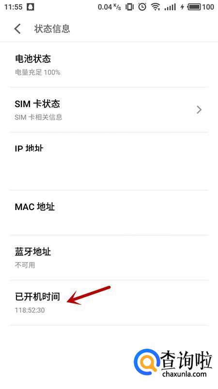 进入状态信息后,即可查看到“开机时间”。