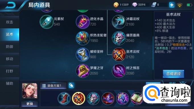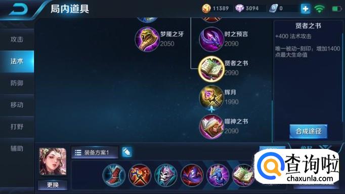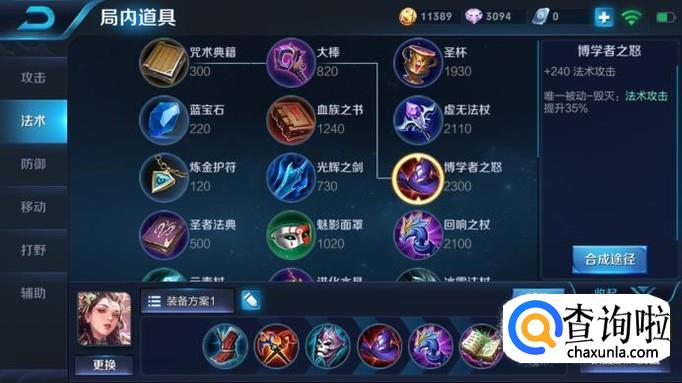 第四件装备出博学者之帽。法强不够的问题出了这件装备之后可以立马得到解决,因为这件装备本来就有和其他大件一样的增加240法强的效果,而且它的唯一被动还可增加35%的法强,对于法师来说是一个质的飞跃。