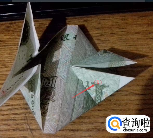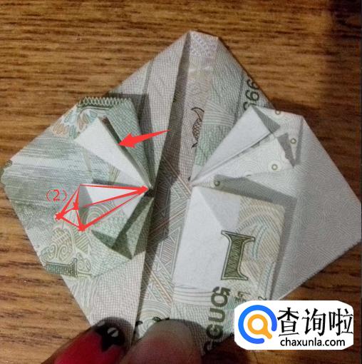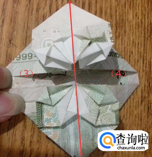 按6中步骤折成效果如下,沿图中红线向下对折,即(3)(4)重叠。