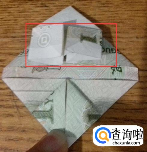 按框中所示,将折角取开成为正方形,其余三个角同样如此操作。