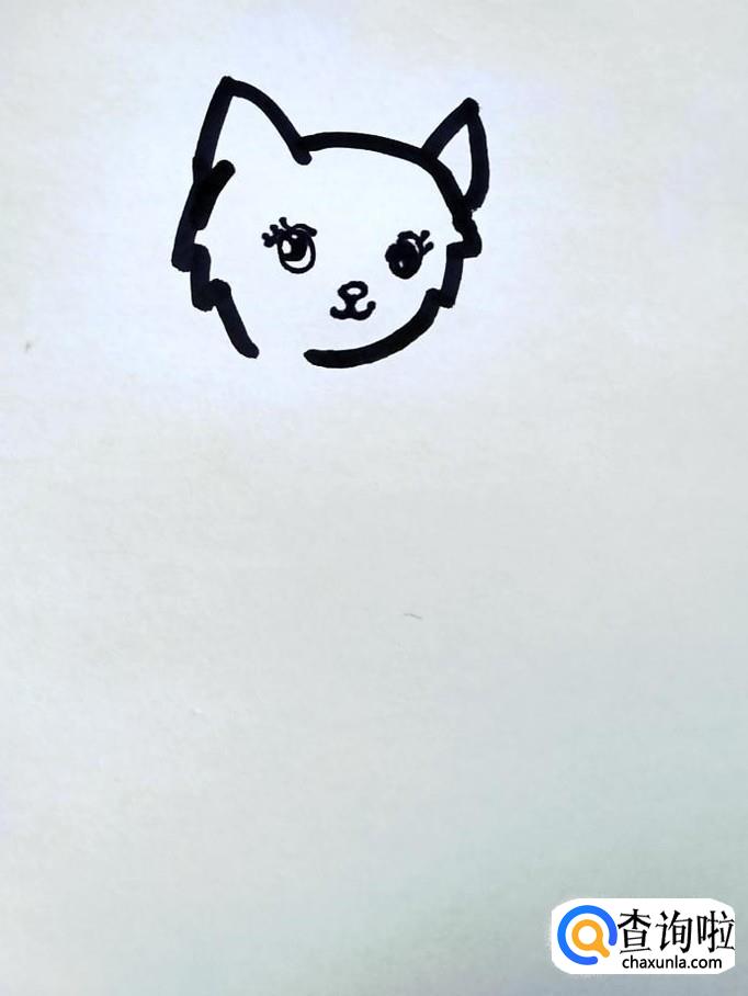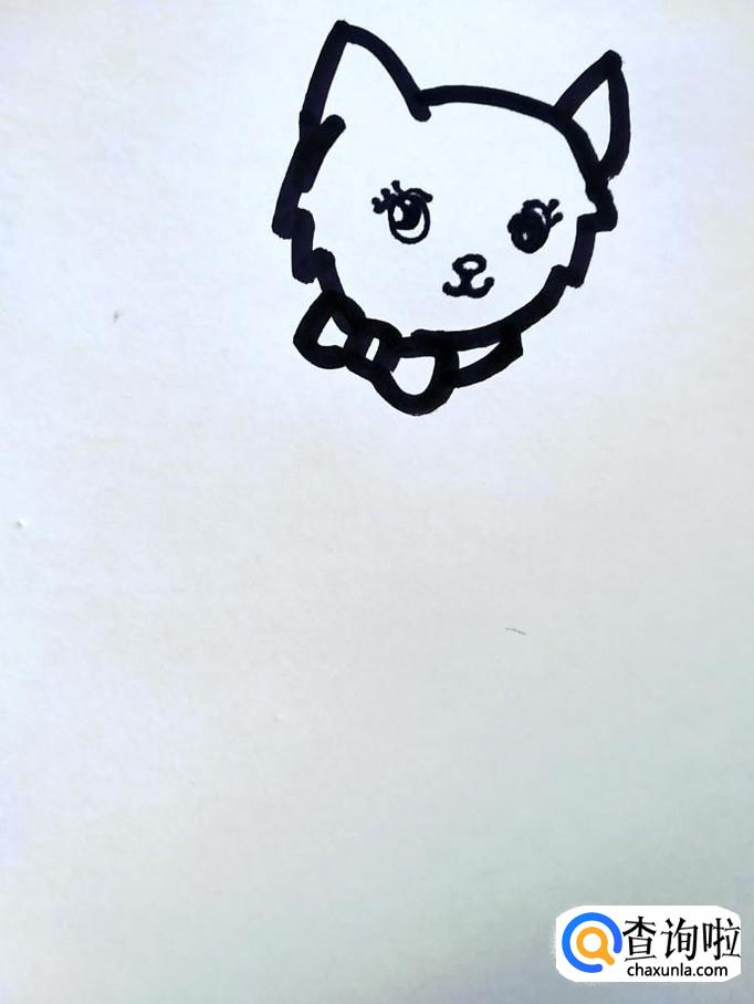 在猫的头部画出猫的眼睛,鼻子,嘴巴。猫咪的眼睛圆溜溜的,眼珠也是圆形的,不要过大,让眼睛留出少量白色部分,让猫咪看上去有神采。