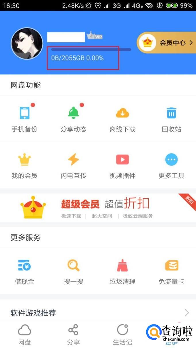 最后,返回到个人中心页面,在个人中心页面中可以看到当前网盘的容量已经达到2T了,按照正常使用需求,该容量已经足够了。