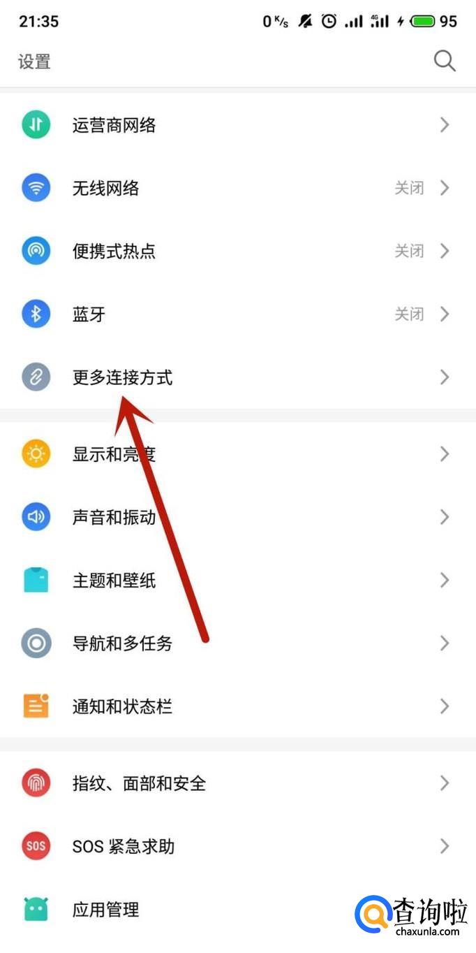 进入手机设置,找到“更过连接方式”,如图所示。