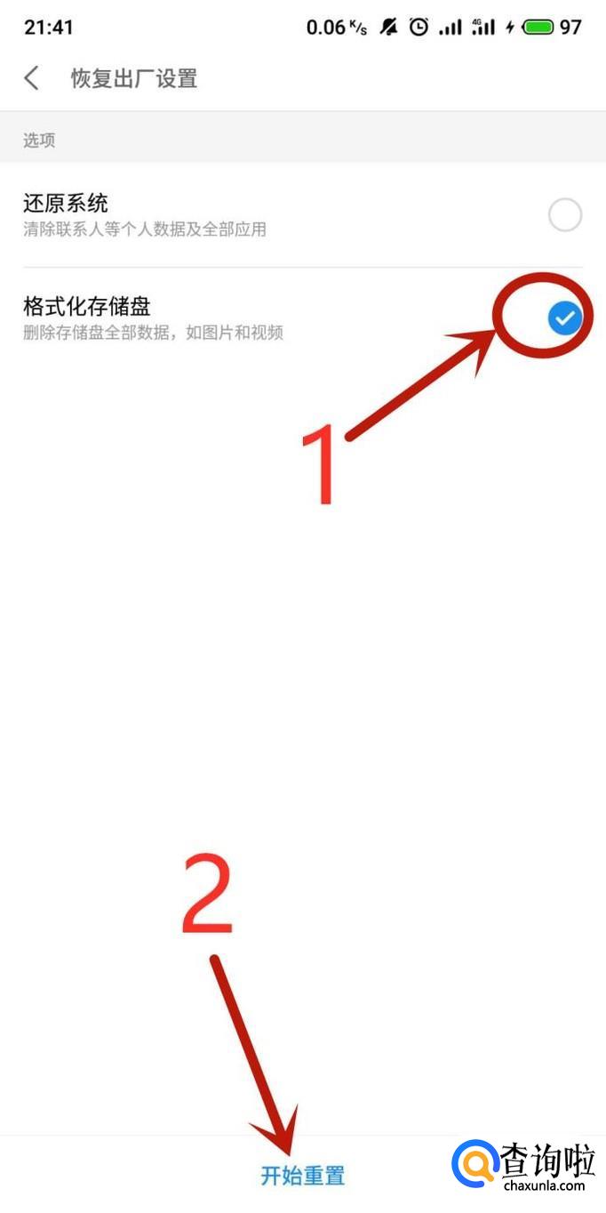 进入之后,勾选“格式化存储盘”,点击“开始重置”,如图所示。