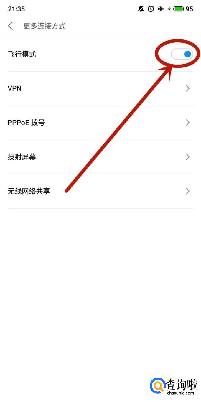 进入之后,将飞行模式打开十几秒钟后,再将其关闭,如图所示。