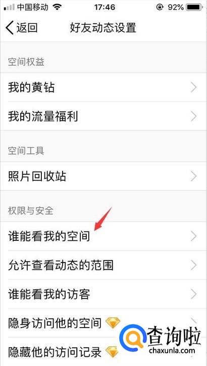 最后我们只需要在谁能看我的空间里设置一下自己想要的访客权限即可。