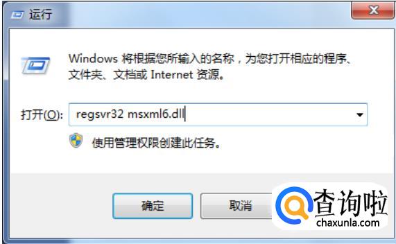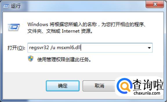 安装完成之后在对话框中输入 regsvr32 /u msxml6.dll,点击确定。