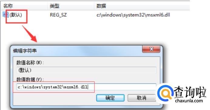 如果默认值是这个内容就ok了,如果没有就填这个默认值 C:WindowsSystem32msxml6.dll。