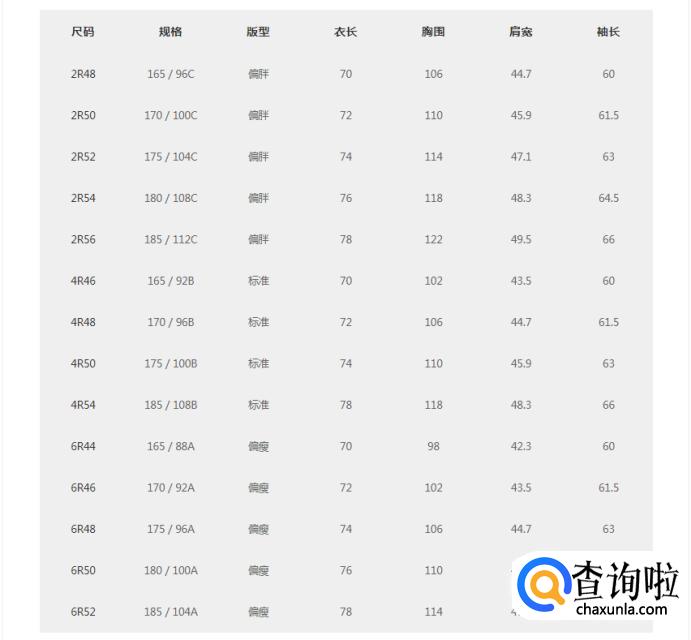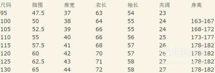 西服型号对照表;