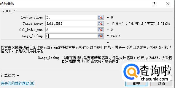 在Col_index_num后面栏目中2(即引用第二列的数值),Range_lookup栏输入0;并且单击下方确定按钮即可。