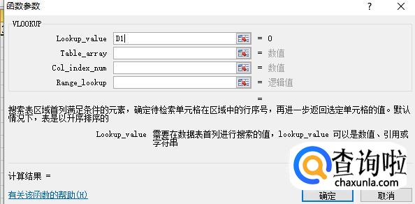 在打开后弹出的函数对话框中——LOOKKUP-VALUEl栏中选中D1单元格(所要引出的对象)