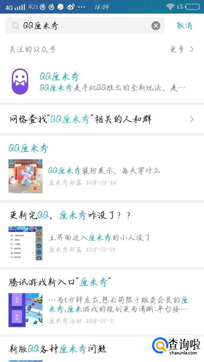 在搜索框中输入QQ厘米秀,如图1所示。点击进入QQ厘米秀,会出现一个新的界面,如图2所示。