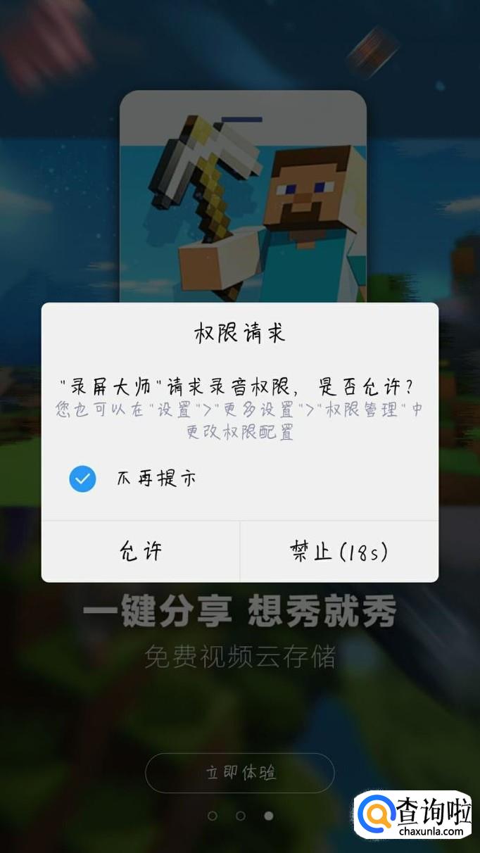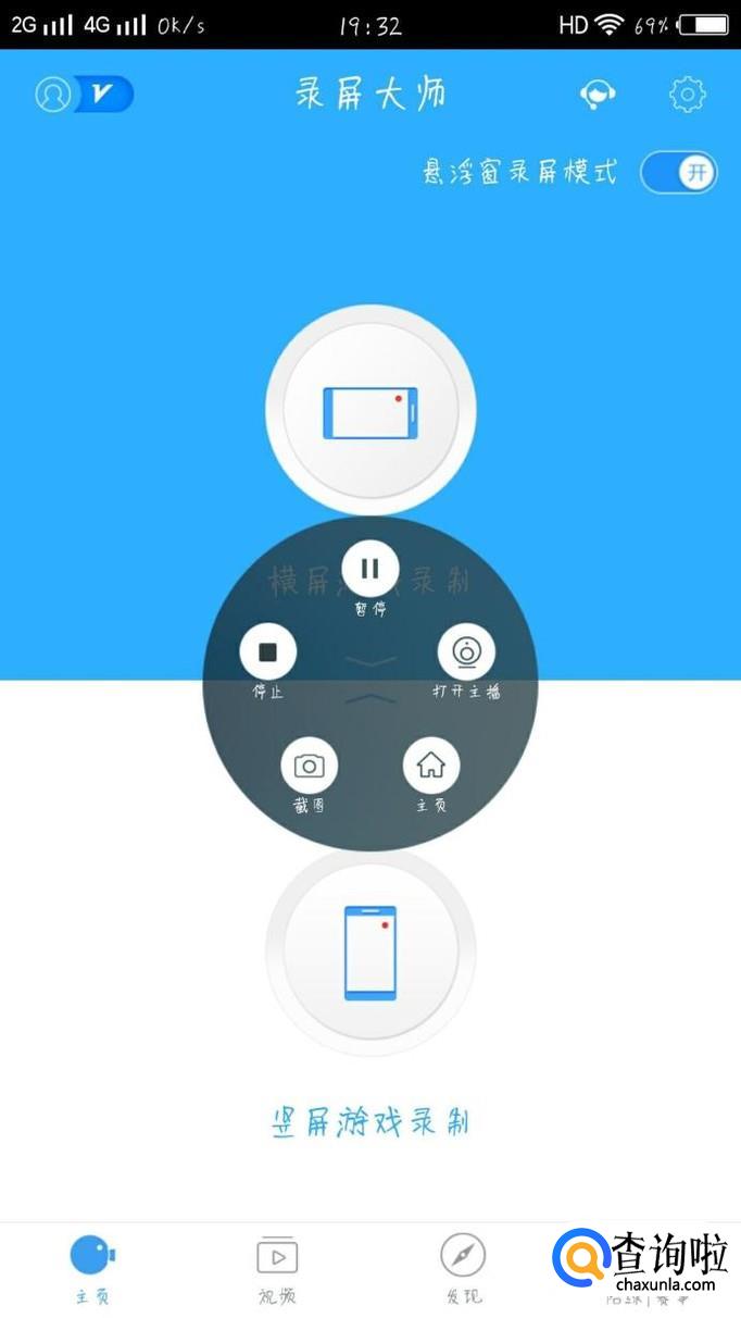 打开软件,允许获取录音等权限,只有这样才会录制声音以及画面,选择横屏还是竖屏,如图所示。