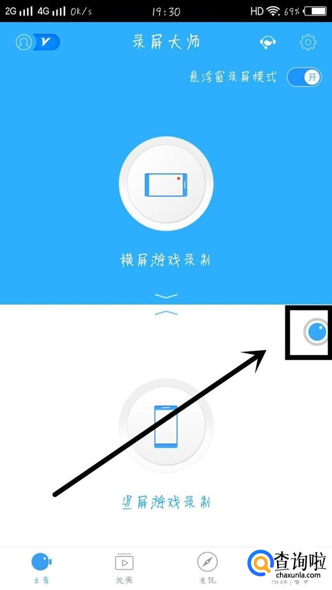 选择视频录制的方向,点击选择方向就会开始录制,这是屏幕上面会出现一个小圆点,如图所示。
