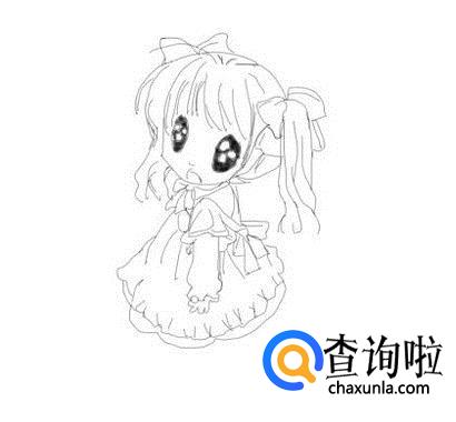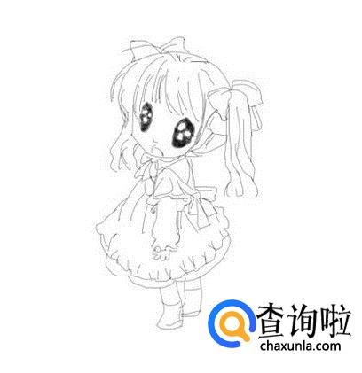 最后在裙子的下面画出人物的两条腿然后再画出脚部,这样Q版动漫人物就画好了,如图所示: