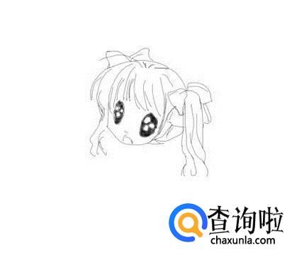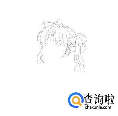 先画出人物的头发,然后在头发上画出蝴蝶结作为头部上的装饰物,如图所示:
