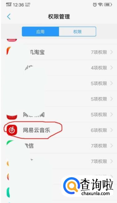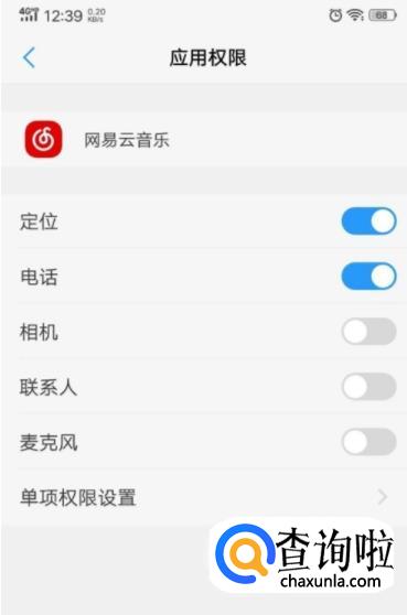 进入到权限管理界面之后,我们找到网易云音乐的图标点击打开。接下来我们就会进入到应用权限的界面,我们点击界面下方的单项权限设置选项。