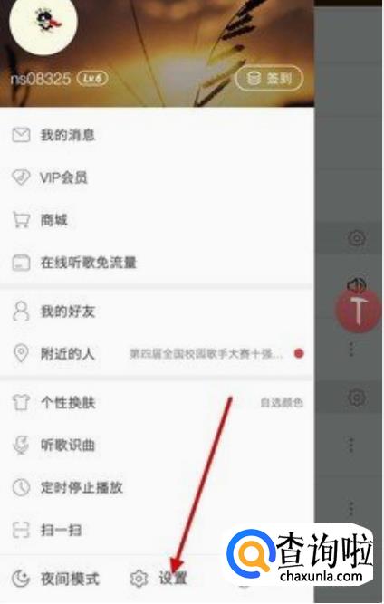 我们还需要关闭网易云音乐的推送信息。打开网易云音乐进去主界面,然后选择左上方的菜单图标。进入网易云设置的菜单以后,我们可以在底部看到“设置”,点击进入。