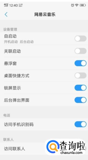 进入到权限设置界面之后,我们只需要将界面中的悬浮窗,锁屏显示和后台弹出界面三个选项右侧的开关打开。这样网易云音乐就会在手机上显示悬浮窗口了。
