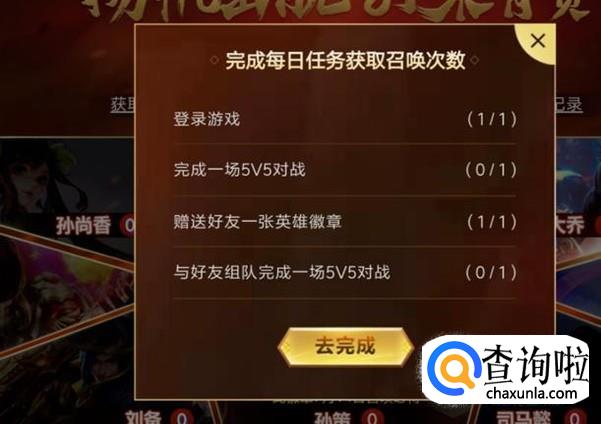 绑定成功之后,通过完成任务获得召唤次数,如图所示。