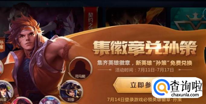 进入游戏之后即可看到“集徽章兑孙策”的活动,点击“立即参与”,如图所示。