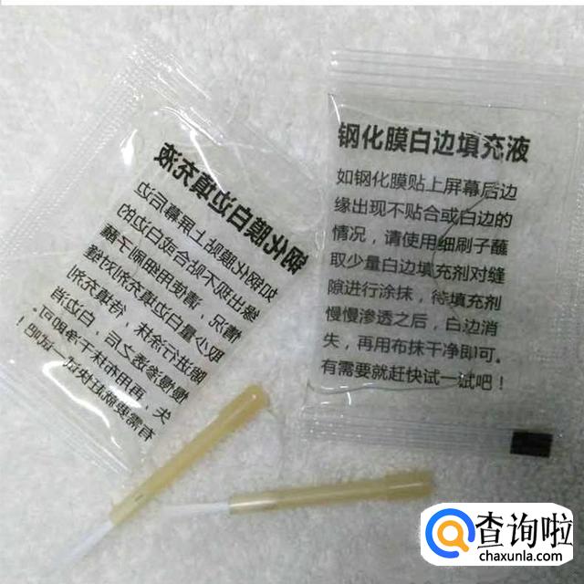 一般我们购买钢化膜的时候,都会赠送白边消除液,如图所示,这种油状液体涂在白边里可以挤出空气,消除白边。