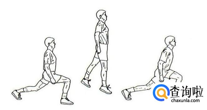 保持立正姿势,右脚向前跨出一大步,双手叉腰,轻轻弯曲膝盖,轻轻跳起,背部要挺直,跳起的时候要左右脚互换位置,要注意节奏和跳起的高度,以免扭伤双腿。初学者可以定下10秒钟做10次的目标,等到动作熟悉了再加快速度。