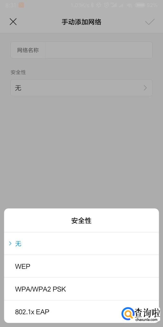 进入这个页面以后,选择你所连接网络的类型,也就是加密类型一般是WPA。