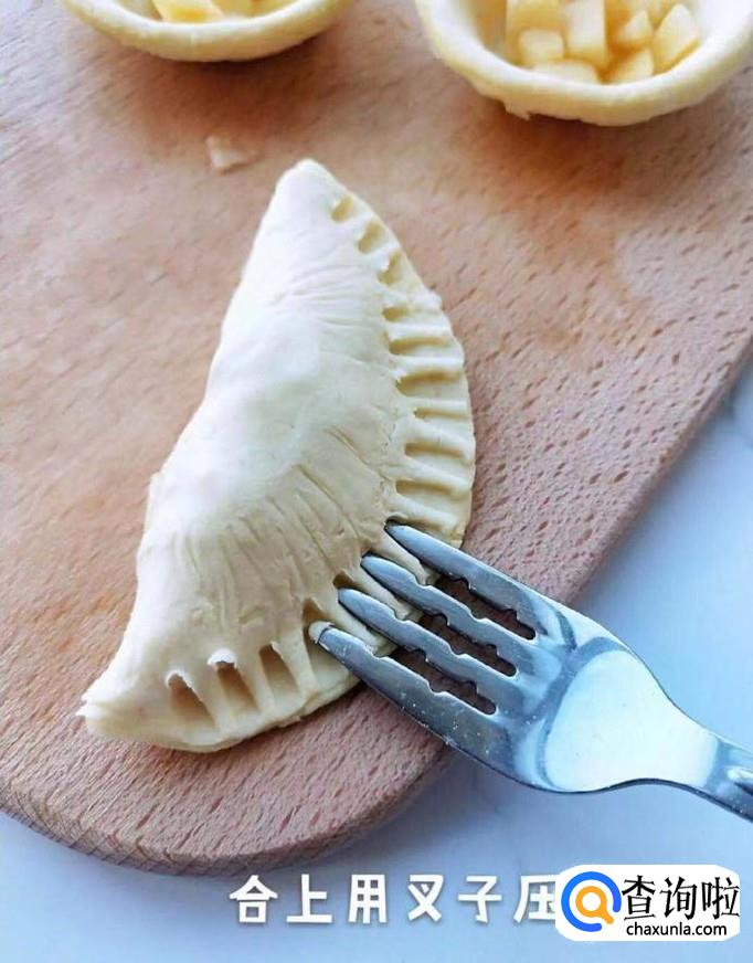 然后合起来用叉子压一压做成类似于饺子的形状,如下图所示。