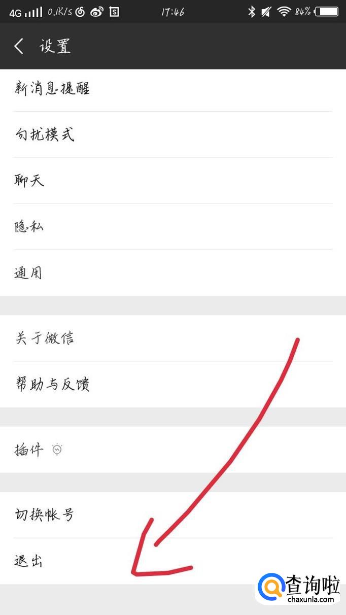 点击右下角的“设置”选项,如图1箭头所示。你会看到出现一个新的界面,点击“退出”选项,如图2箭头所示。