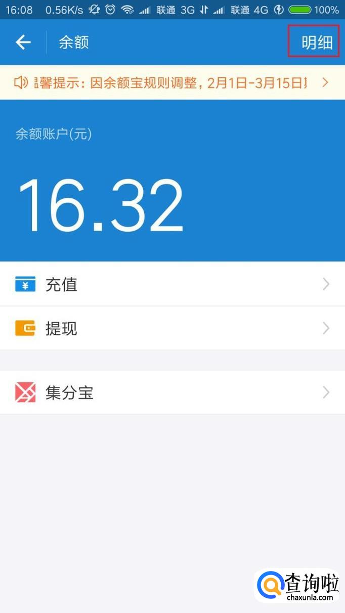 打开余额页面之后,点击右上角“明细”菜单按钮,即可查询到近期支付宝余额到账明细。