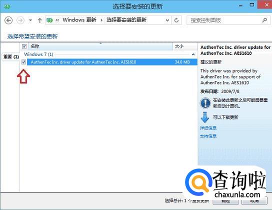 勾选上可用更新项目,然后点击底部的“确定”即可开始安装更新,如下图所示。