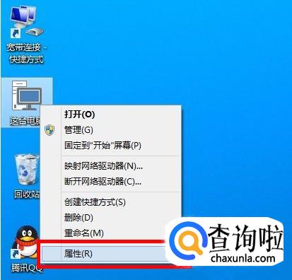 鼠标右键点击Win10桌面上的“这台电脑”,然后选择“属性”,如下图所示: