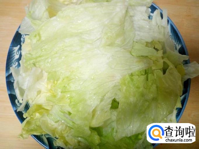 西生菜用手撕成片,用水清洗干净,控干水分。