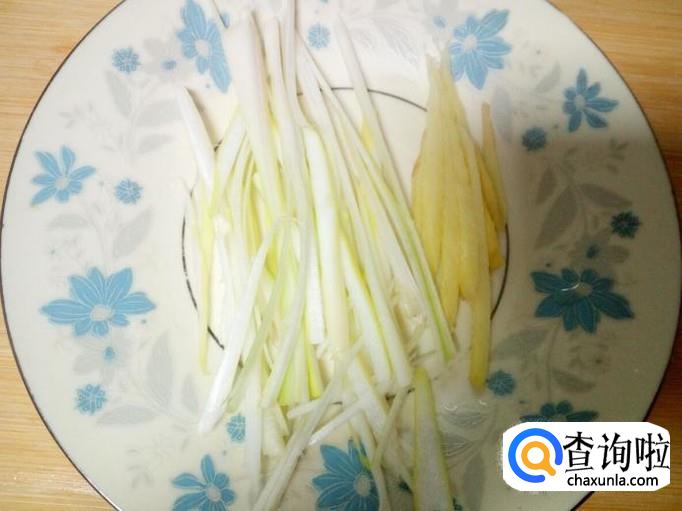 葱,姜,切成丝,备用。