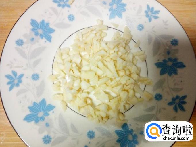 蒜去皮,用水清洗干净,控干水分,切成末。