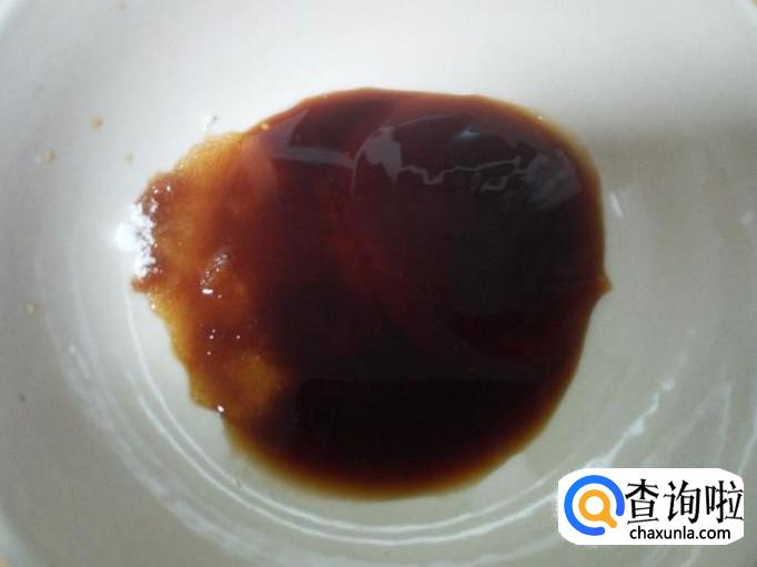 碗里放入一匙儿蚝油,一匙儿蒸鱼豆豉油,少许酱油,少许白糖,少许醋,兑少量的水,调和成料汁。