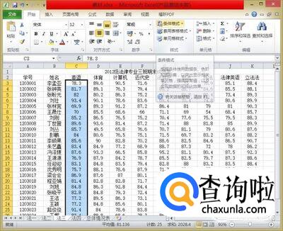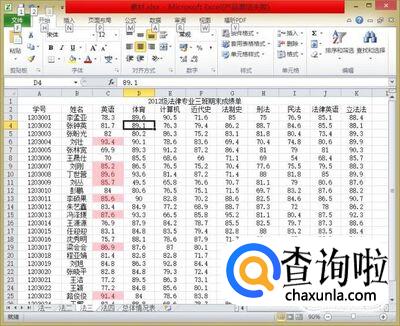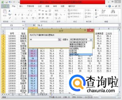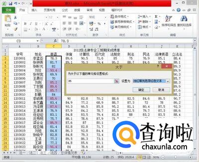选中需要使用相同条件格式的所有列的所有数据,我们以“英语大于85分为条件“为例