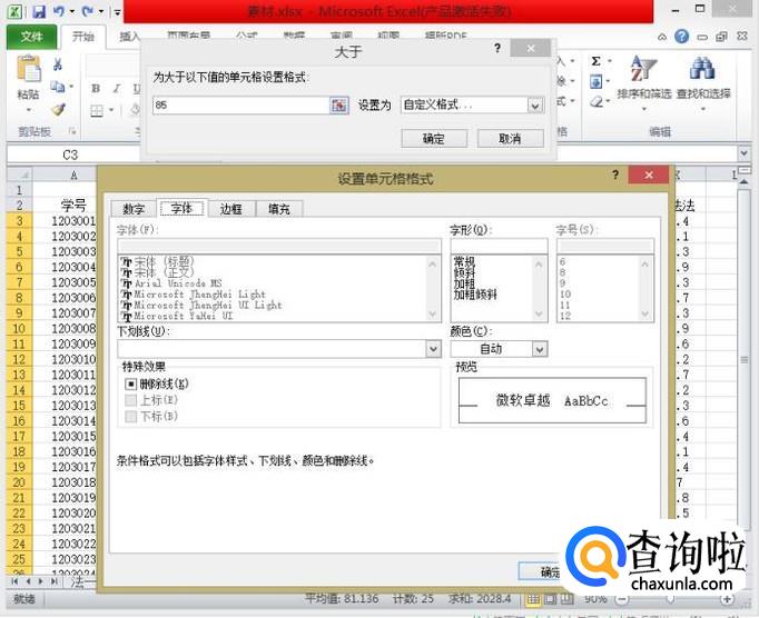 在弹出的对话框中,输入数字”85“,使用默认的颜色和格式