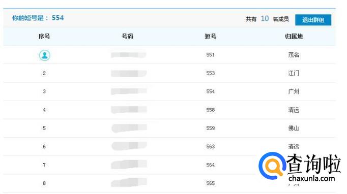 进入之后你会看到你的所在短号群的成员情况了。