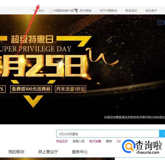 在你的浏览器中找到,移动公司的官方网站,然后点击进入,就可以了。