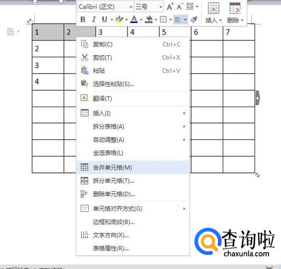 或者选中要合并的单元格,点击鼠标弹出对话框,看到“合并单元格”点击也可完成合并单元格的操作。